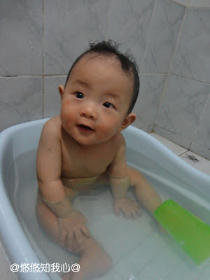 这是小慷的第一次,悠妈还有点小担心小慷会怕水。
